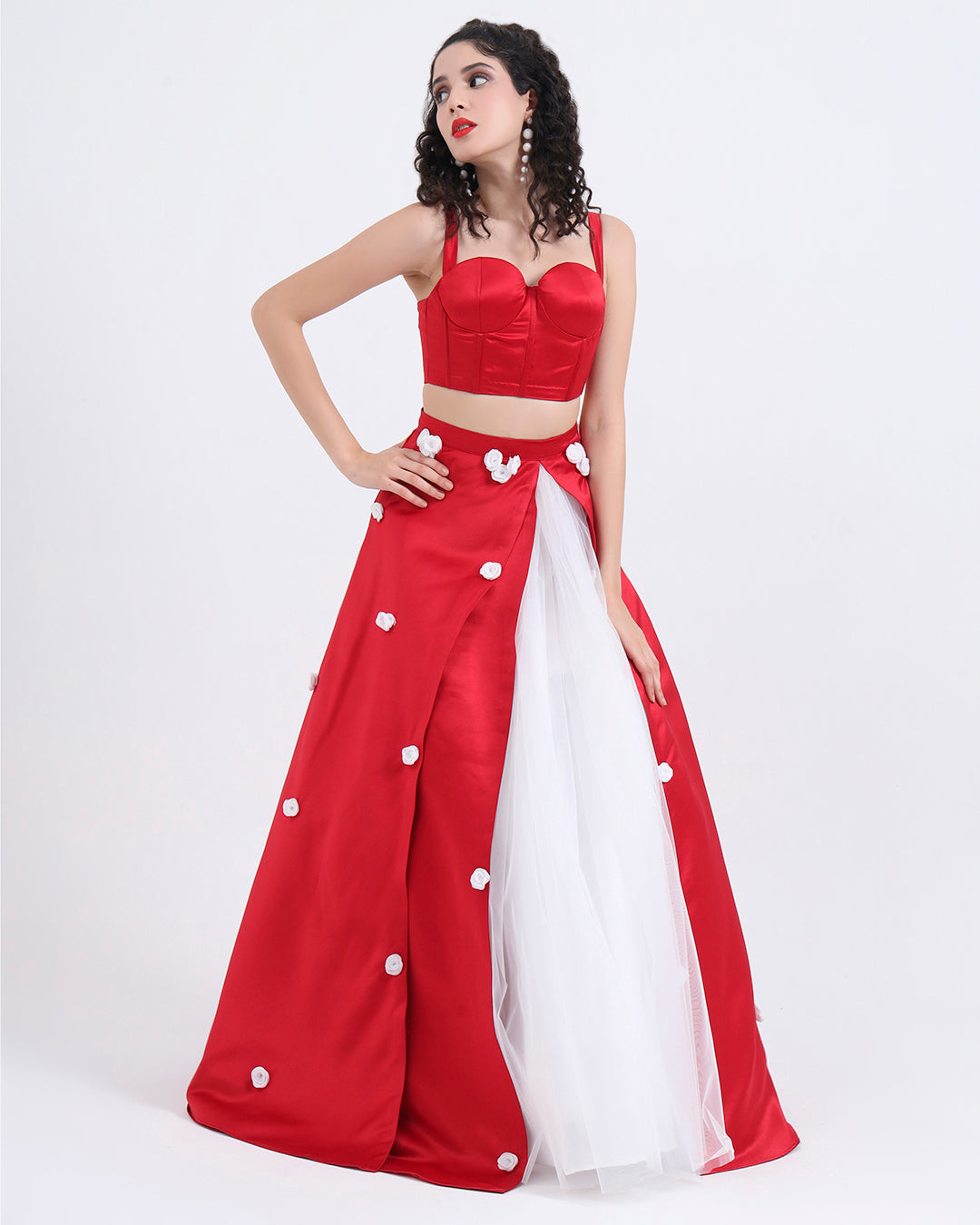 Make an unforgettable statement with this red satin gown, designed for women who love vibrant color, clean structure, and soft feminine detailing.